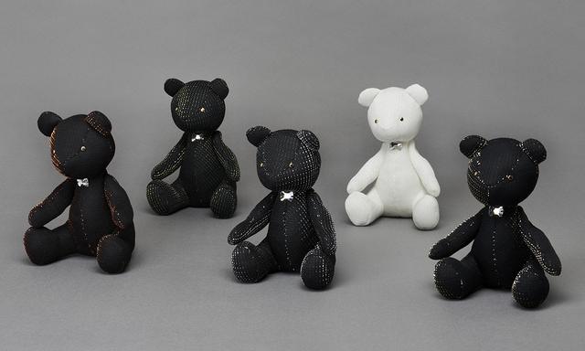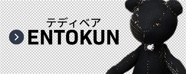 『ENTOKUN(えんとくん)』はこの「ラメ生地」を使い、職人さんが1点1点手作業で丁寧に、高度な技術が伝わる美しさに仕上げたこだわりのテディベア。 スワロフスキーの蝶ネクタイ付き。